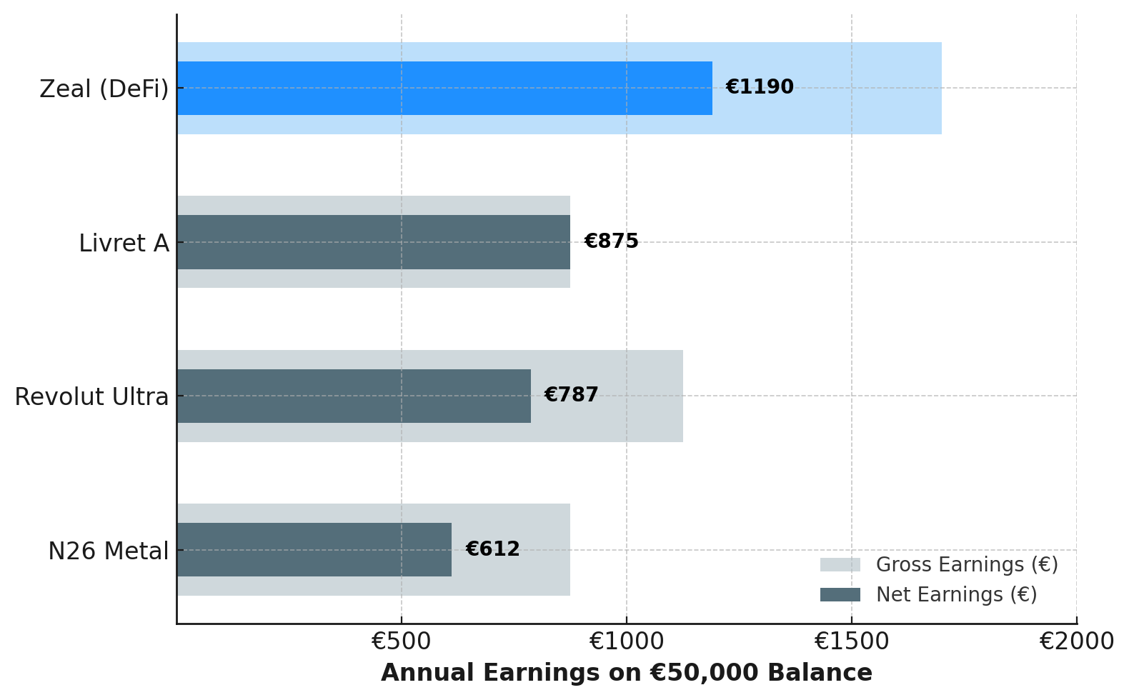 🥇 Sieger: Zeal mit riesigem Vorsprung. Echtes Geldwachstum vs. symbolische Zinsen, die kaum die Inflation decken.